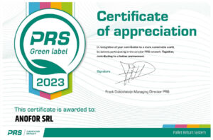Nel 2023 Anofor ha rinnovato la certificazione Iso 14001-2015 con l’ente Bureau Veritas e nell’ottica di un continuo miglioramento ambientale ha redatto i suoi indicatori chiave di sostenibilità. Dal 2018 Anofor utilizza per gli imballaggi solo Legno PEFC derivante da foreste a taglio controllato e certificato dal nostro fornitore e nel 2023 è stata selezionata per il Premio PRS Green Label 2023 avendo ottenuto un tasso di recupero pallet superiore al 65%.